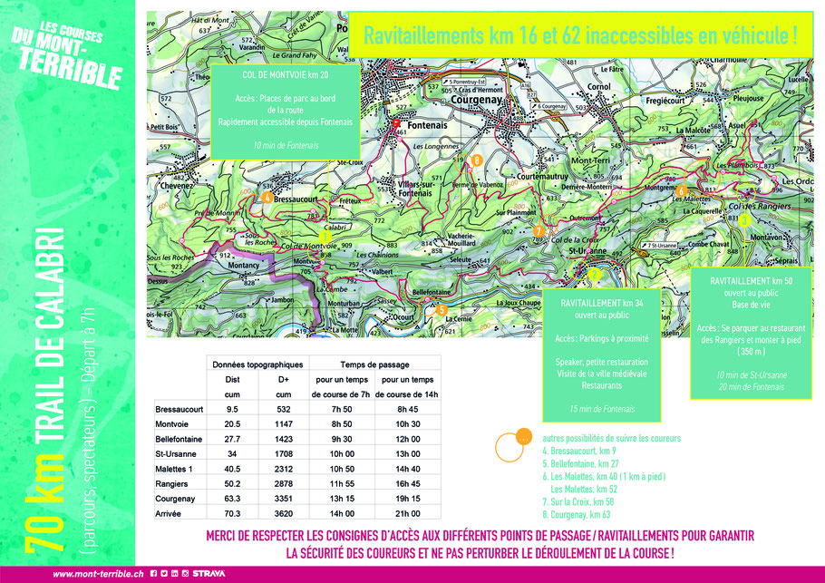 Les coureurs doivent se déplacer par leurs propres moyens, aucun système de navettes n’étant prévu entre Fontenais et St-Ursanne.